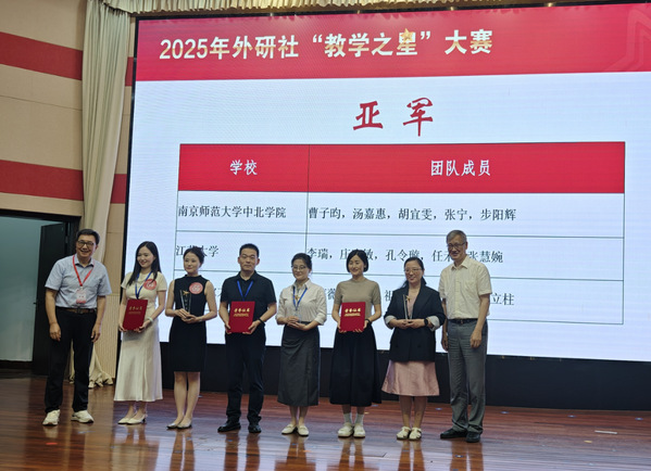 近日,2025年外研社“教学之星”大赛江苏赛区决赛落下帷幕。我校两支教学团队进入省决赛并取得了优异成绩。大学英语组参赛团队(宫蔷薇、陈琦、祖大庆、李淑玲、张立柱)荣获一等奖,同时摘得江苏省亚军;理解当代中国组参赛团队(徐亚琴、郑璐、钱春花、高翔、刘婷婷)荣获二等奖。