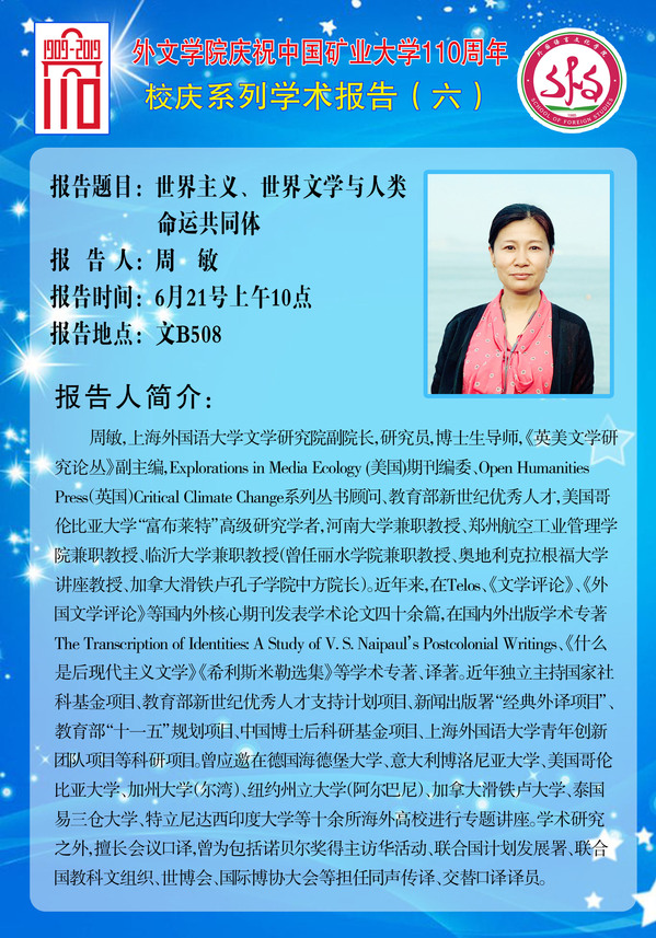 校庆系列学术报告(六)——世界主义、世界文学与人类共同体