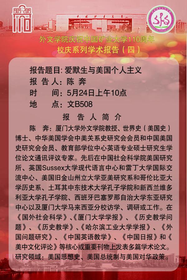 庆祝建校110周年学术报告(四)——爱默生与美国个人主义 陈奔